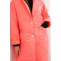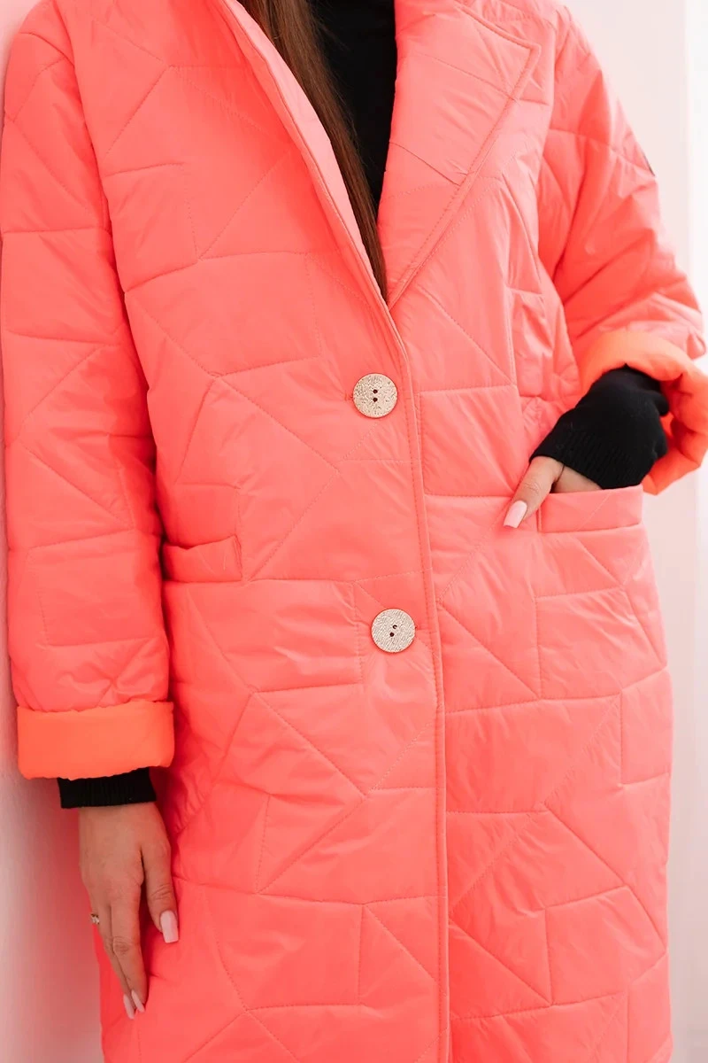 3. Dámská bunda Plus Size prošívaná s ozdobnými knoflíky a límcem neonově růžová