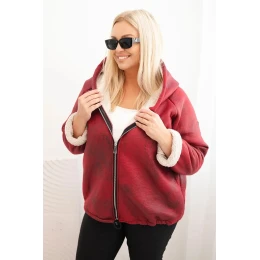 Dámská bunda Plus Size s kapucí a beránkem bordová