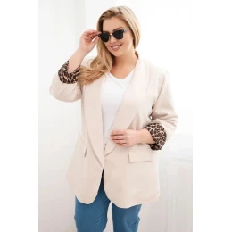 Dámská bunda Plus Size s podšívkou v leopardím vzoru béžová