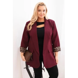 Dámská bunda Plus Size s podšívkou v leopardím vzoru švestková