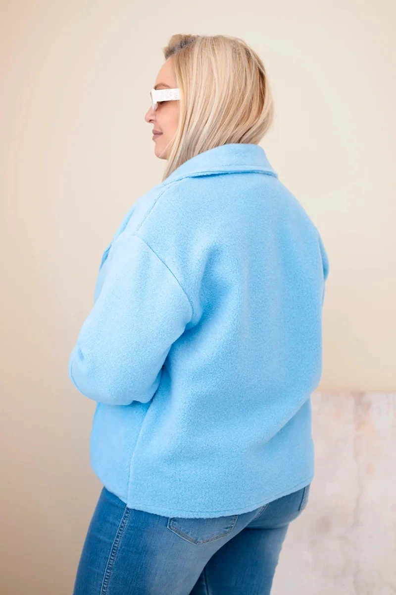 Dámská bunda Plus Size s vlněnou strukturou a kapsami modrá
