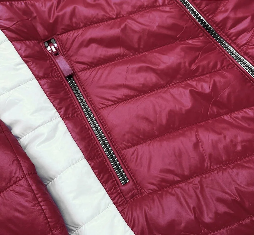 Bunda má vypasovaný střih a je zateplená tenkou vrstvou syntetické péřové výplně. Model má dvě kapsy a zapíná se zipem. Bunda má délku k bokům.