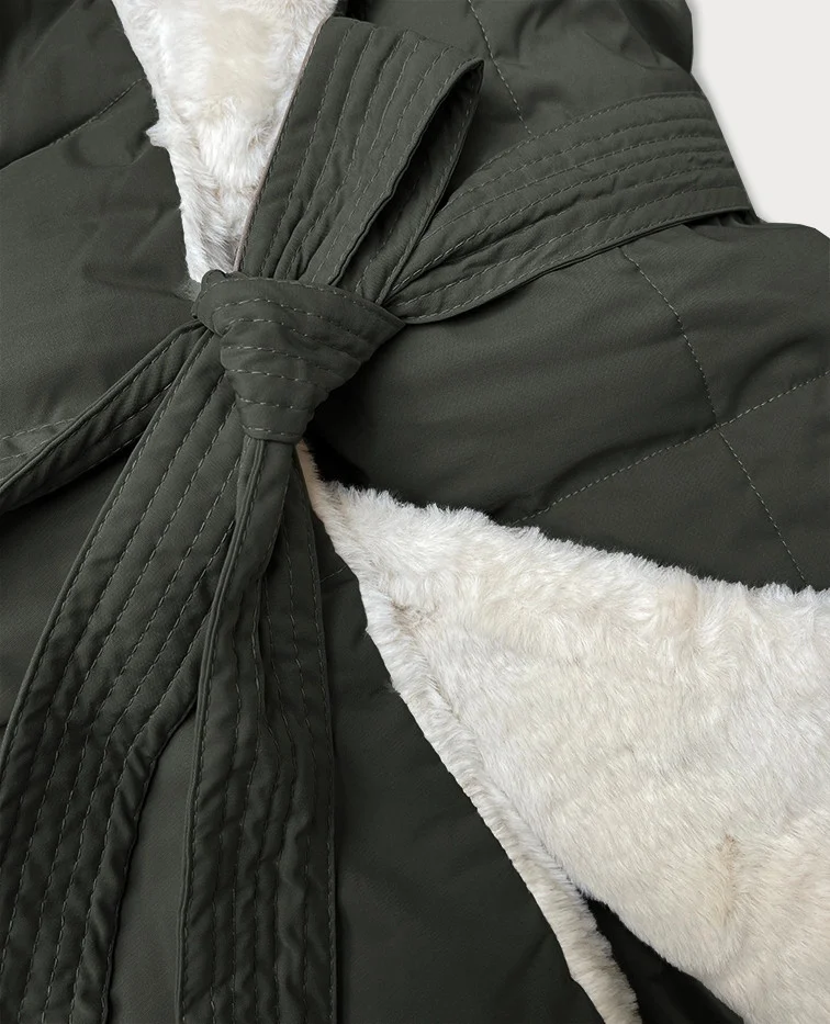 Dámská bunda v army barvě obšitá kožešinou, se stojáčkem J Style (16M9165-136)