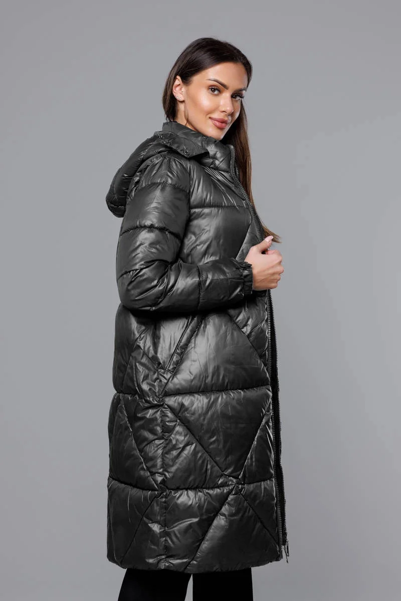Bunda má jednoduchý střih, je lehce zateplená syntetickou péřovou výplní, má dvě kapsy a zapíná se dvoustranným zipem. Kapuci je možné odepnout. Model má délku do poloviny stehen.