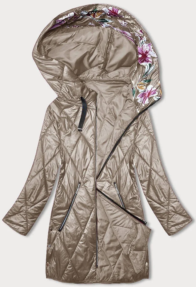 Dámská bunda v barvě cappuccino s ozdobnou kapucí model 19552458 - S'WEST