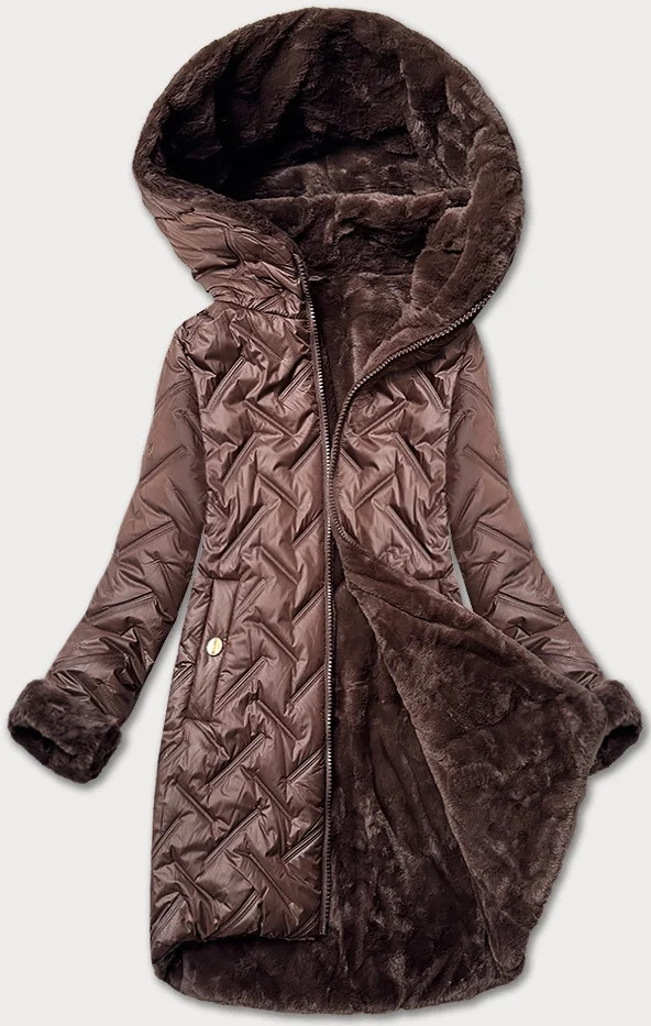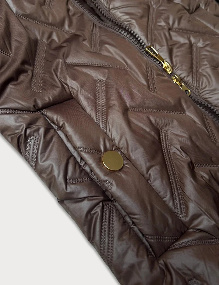 Dámská bunda v čokoládové barvě pro přechodné období s kožešinovou podšívkou model 21248337 - S'WEST