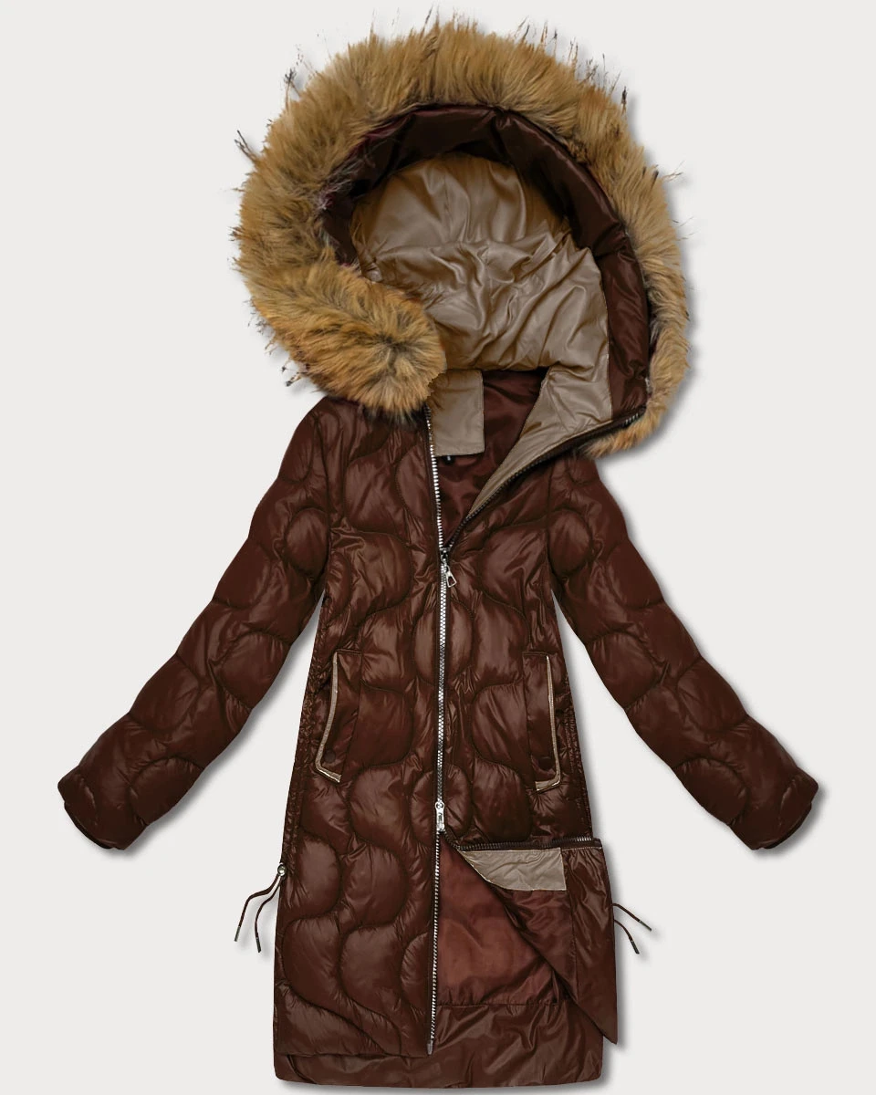 Dámská bunda v čokoládové barvě s ozdobným prošíváním J Style (5M3351-158)