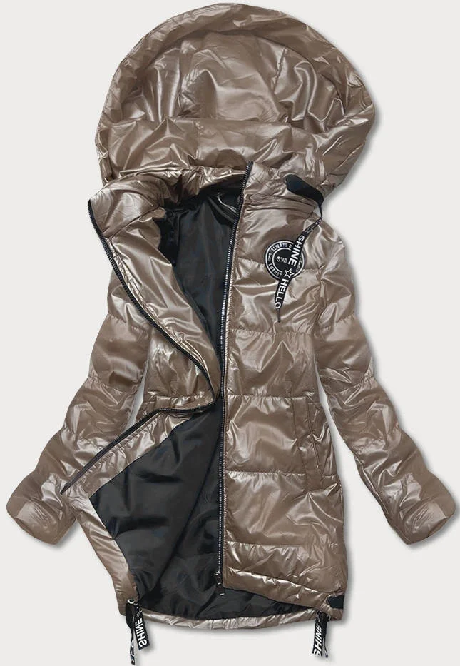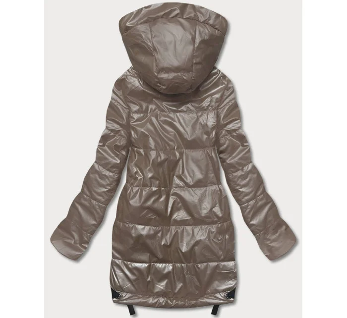 Dámská bunda v kakaové barvě s odepínací kapucí (B8086-12)