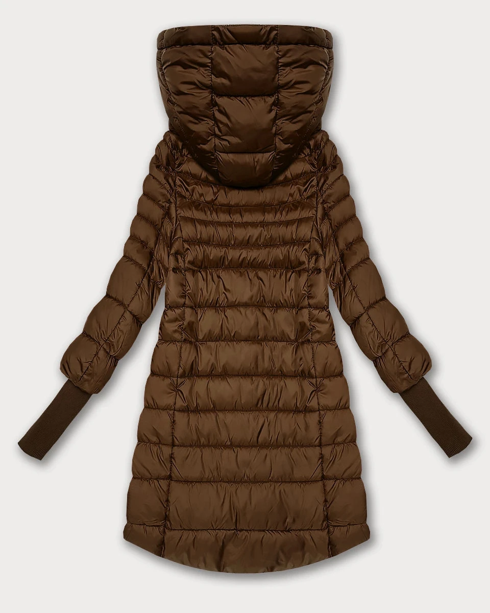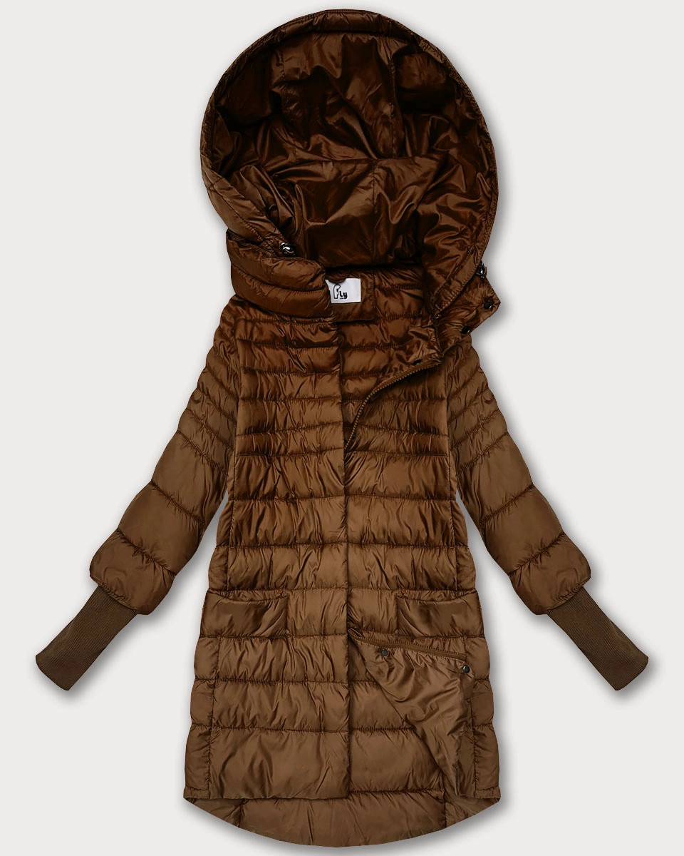 Dámská bunda v karamelové barvě pro přechodné období s úpletovými stahovacími lemy (1828)