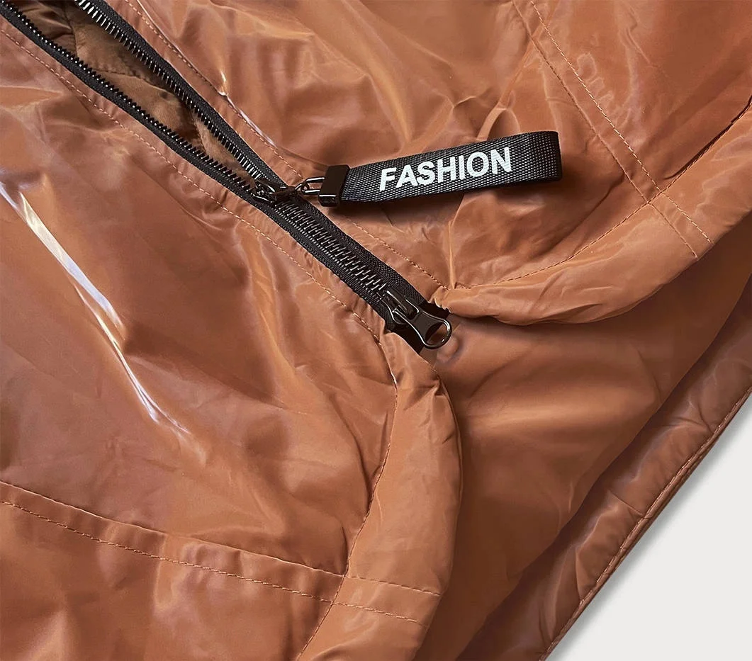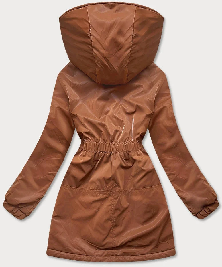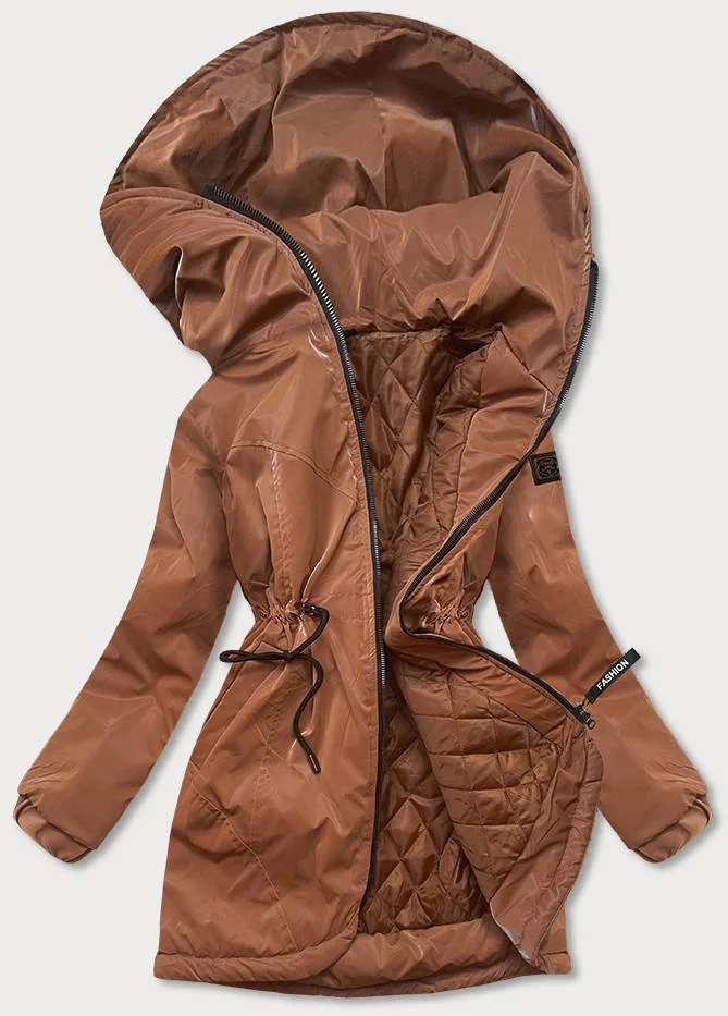 Dámská bunda v karamelové barvě s kapucí (B8105-12)