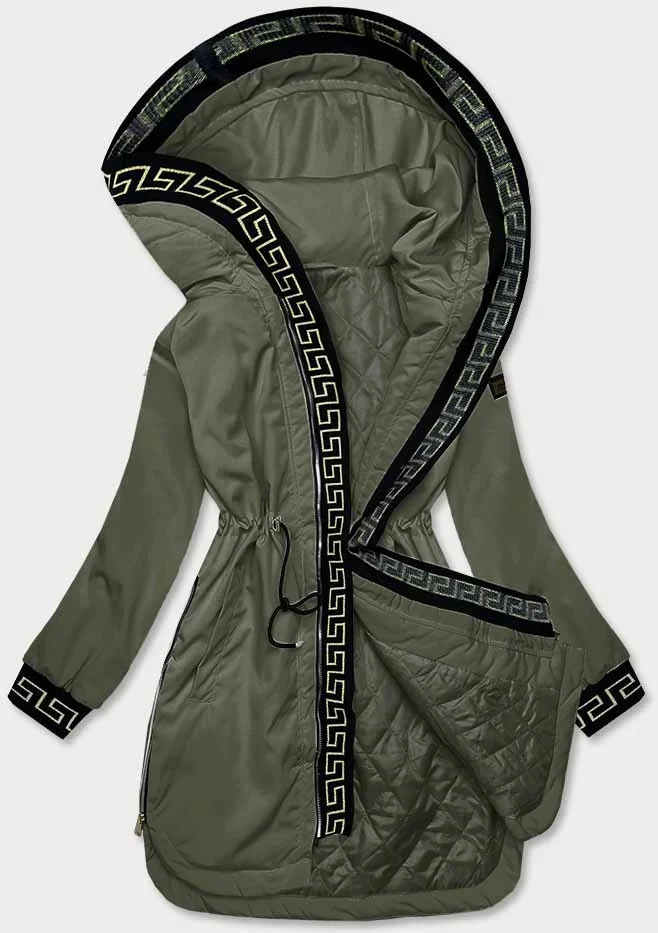 Dámská bunda v khaki barvě s ozdobnou lemovkou (B8139-11)