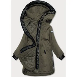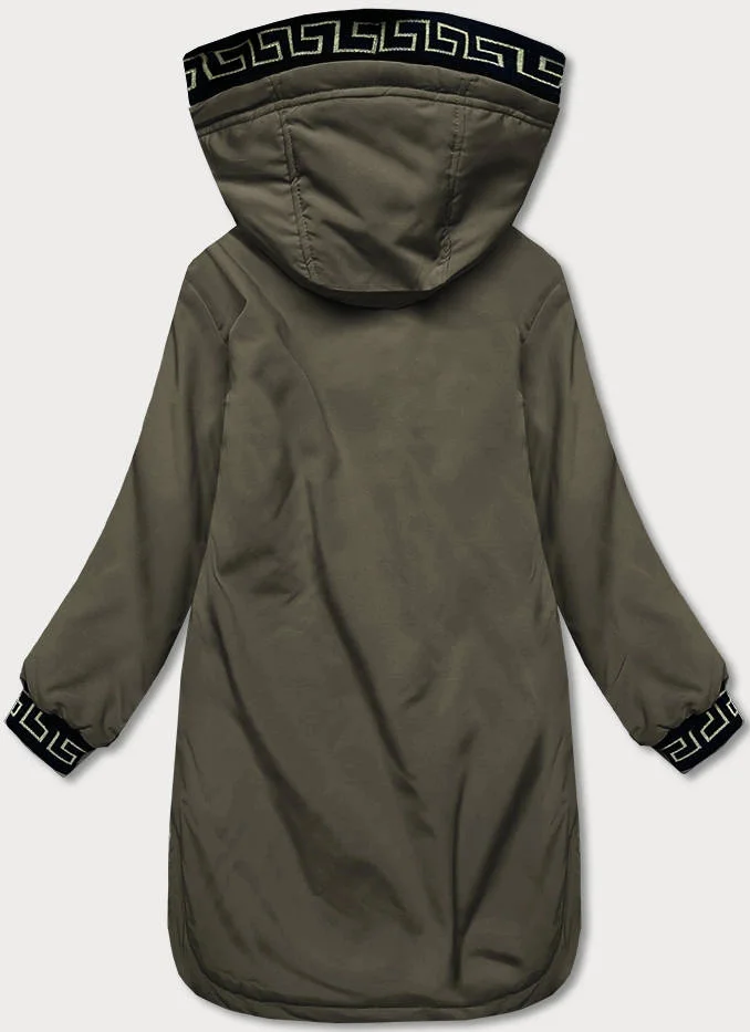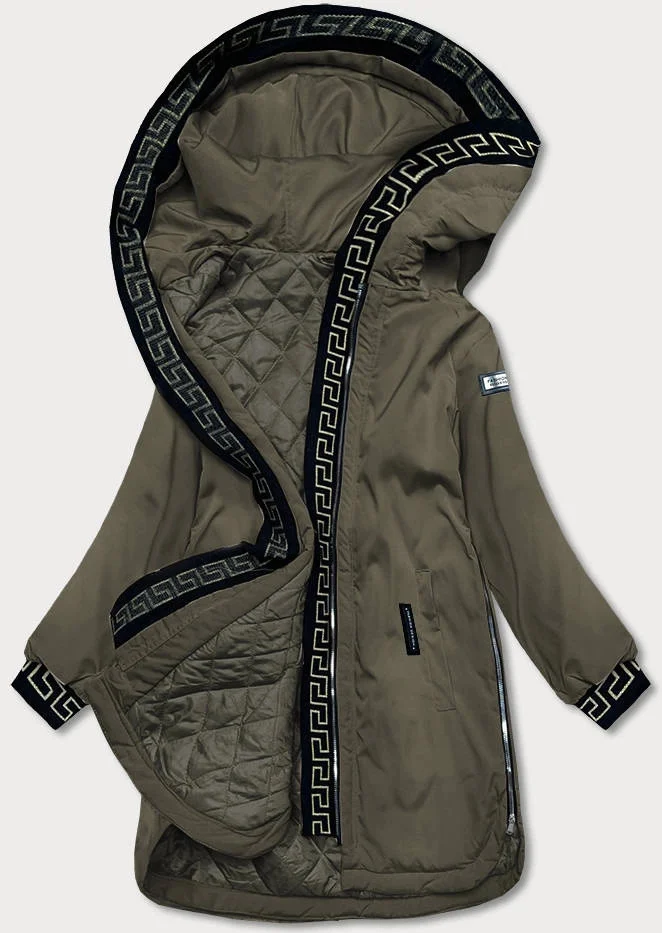 Dámská bunda v khaki barvě s ozdobnou lemovkou (B8150-11)