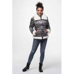 Bunda je vypasovaná, je lehce zateplená syntetickou péřovou výplní a má délku k bokům. Model je vyrobený z lesklého materiálu a má stojáček a kožešinový límec. Rukávy jsou obšité kožešinou. Bunda má dvě kapsy a zapíná se zipem a panelem s knoflíky.