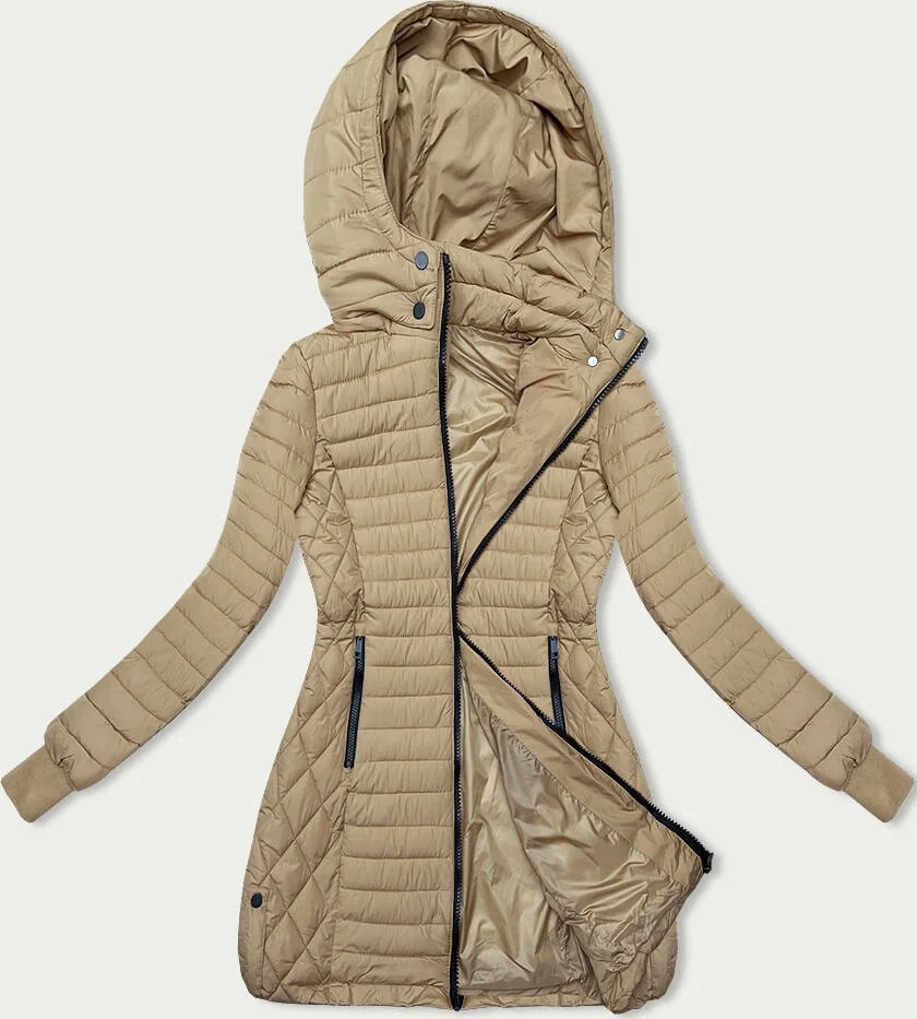 Dámská bunda v pískové barvě s kapucí pro přechodné období (2M-017)