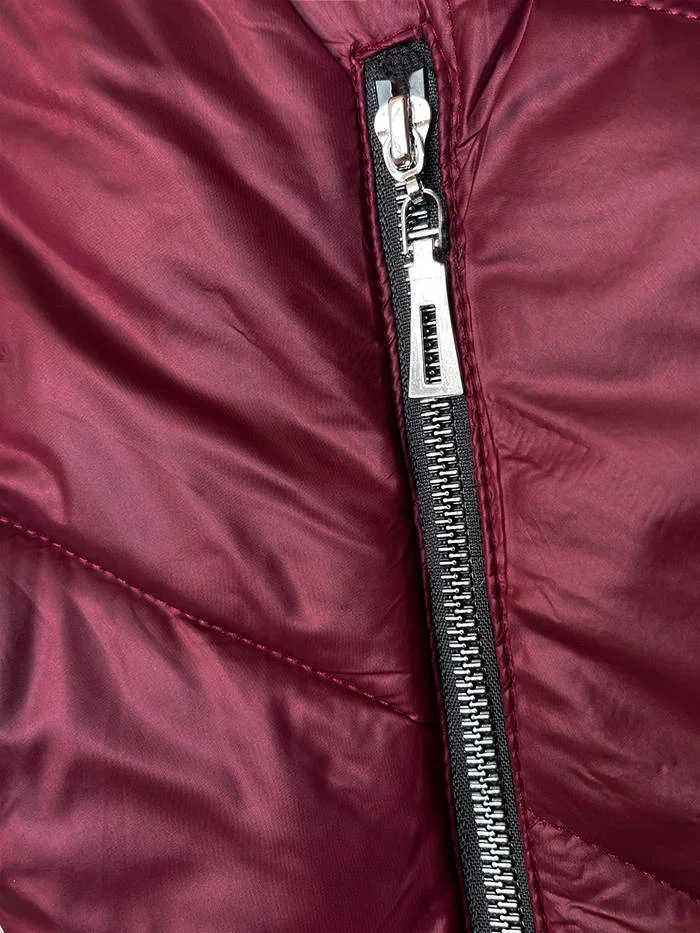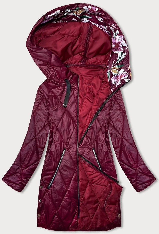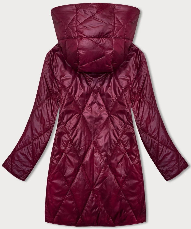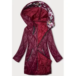 Dámská bunda ve vínové bordó barvě s ozdobnou kapucí (B8227-74)