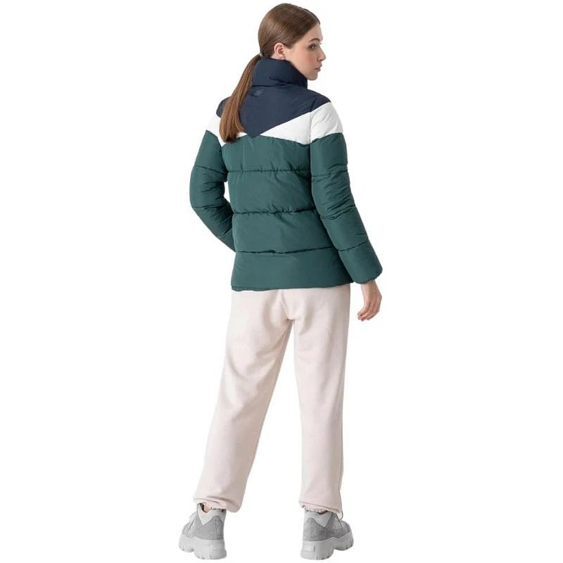 - Bunda pro ženy 4F má výplň ze syntetického peří, díky čemuž poskytuje optimální tepelný komfort v chladnějších dnech.
