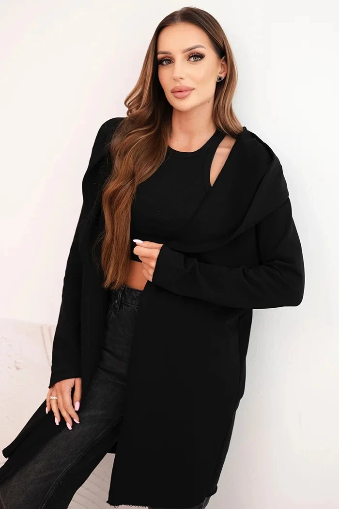 Dámská bunda z bavlny s kapucí a prodlouženým předním dílem černá
