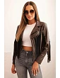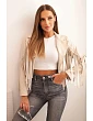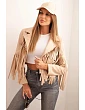 Dámská bunda z eko kůže s třásněmi v boho stylu světlá camelová