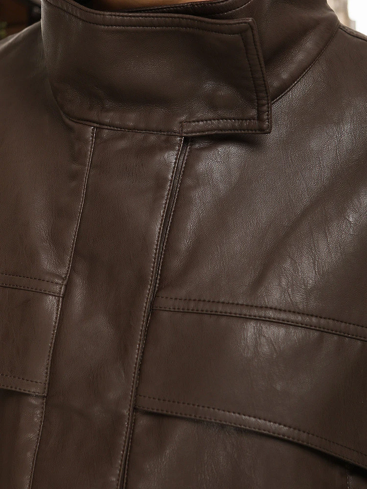 Dámská bunda z ekokůže oversize s vysokým límcem hnědá FashionStreet TY5650