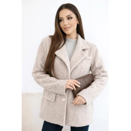 • Dámská bunda z měkkého model 21954918 s límcem tmavě béžová - K-Fashion