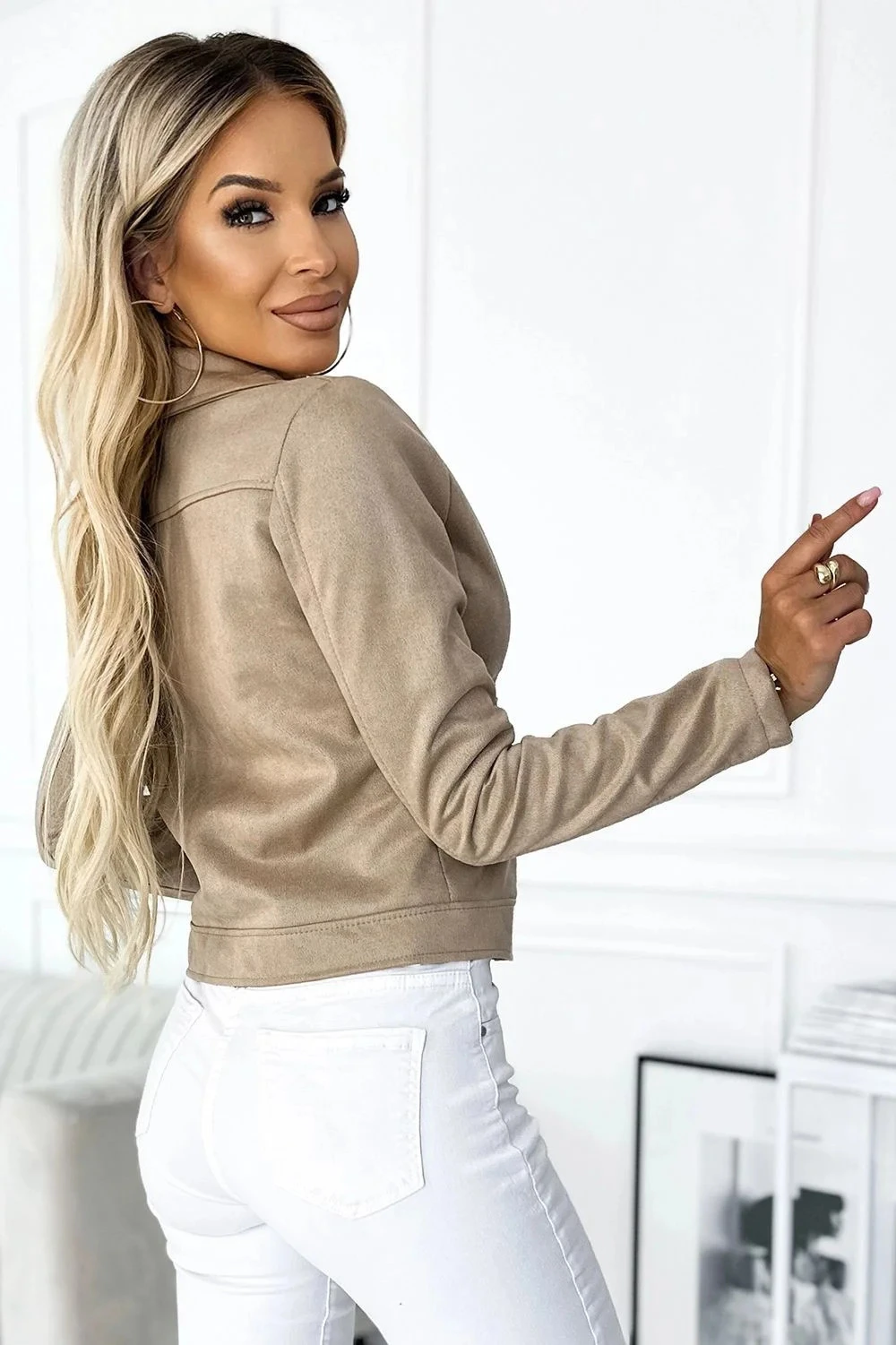 Dámská bundička 481-1 Numoco basic - béžová barva - z semišového materiálu - dlouhé rukávy - zapínání na zip