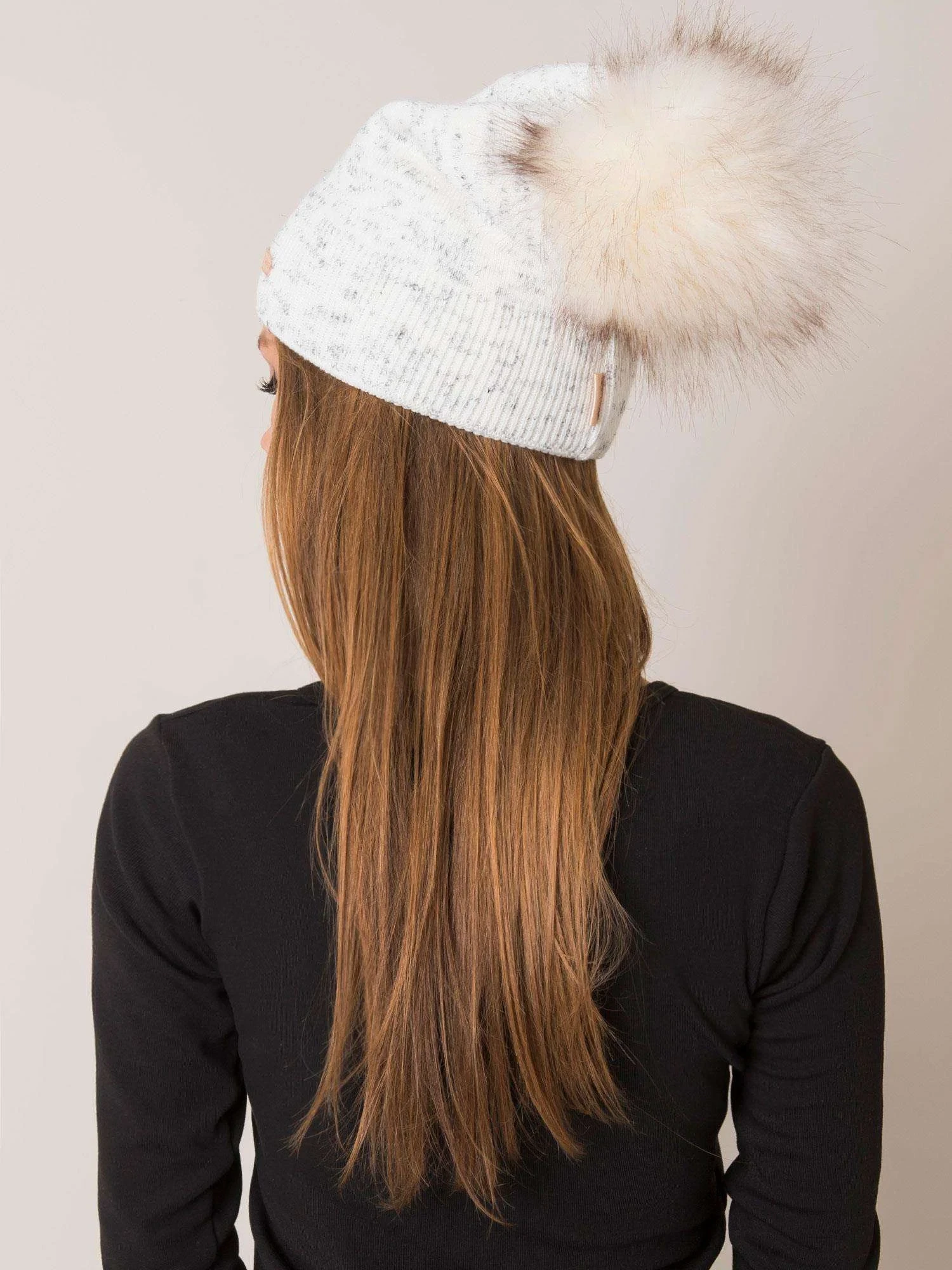 RUE PARIS Ecru dámská čepice s bambulí Polský výrobek
