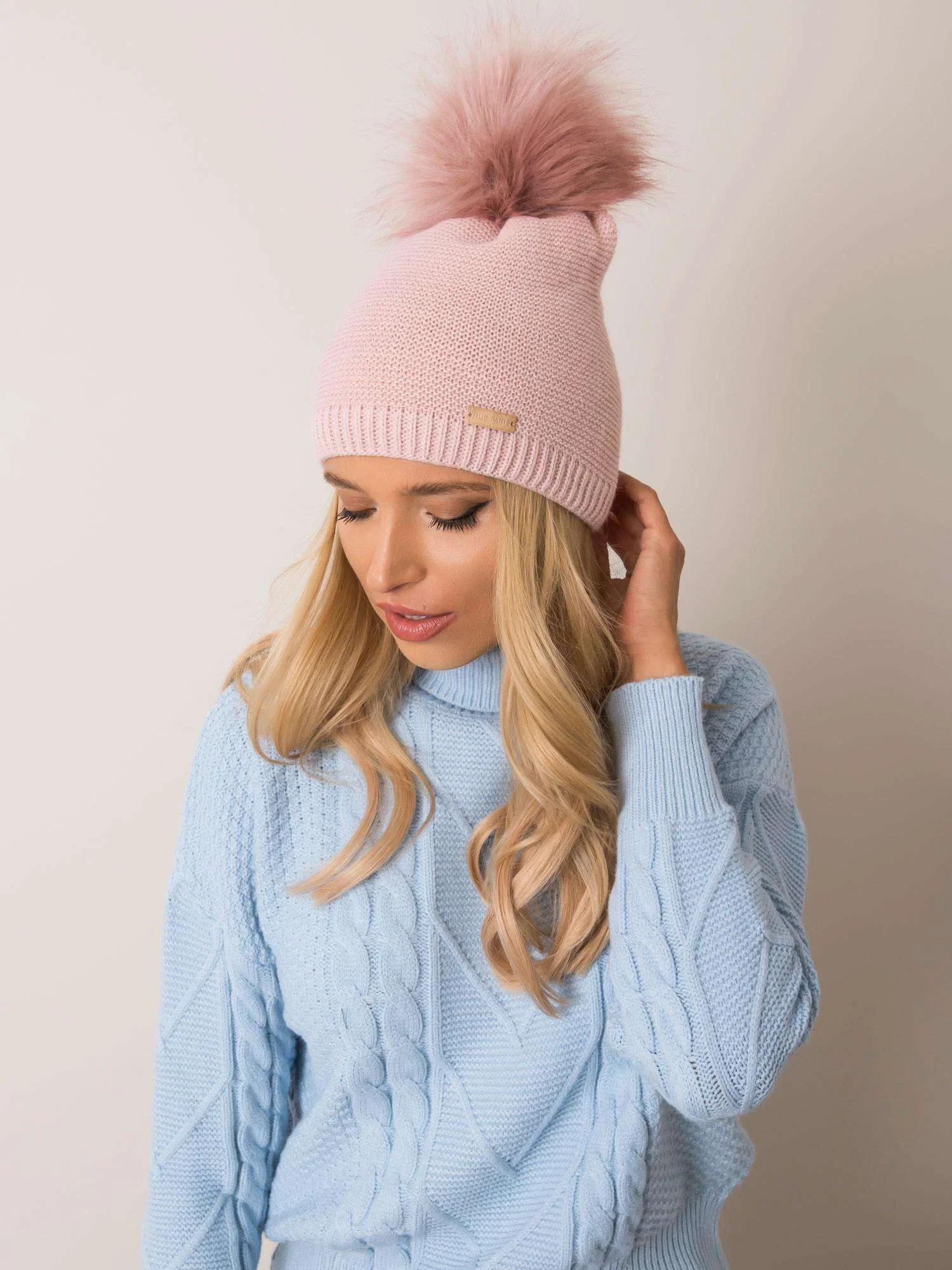 RUE PARIS Světle růžová čepice s bambulí Polský výrobek