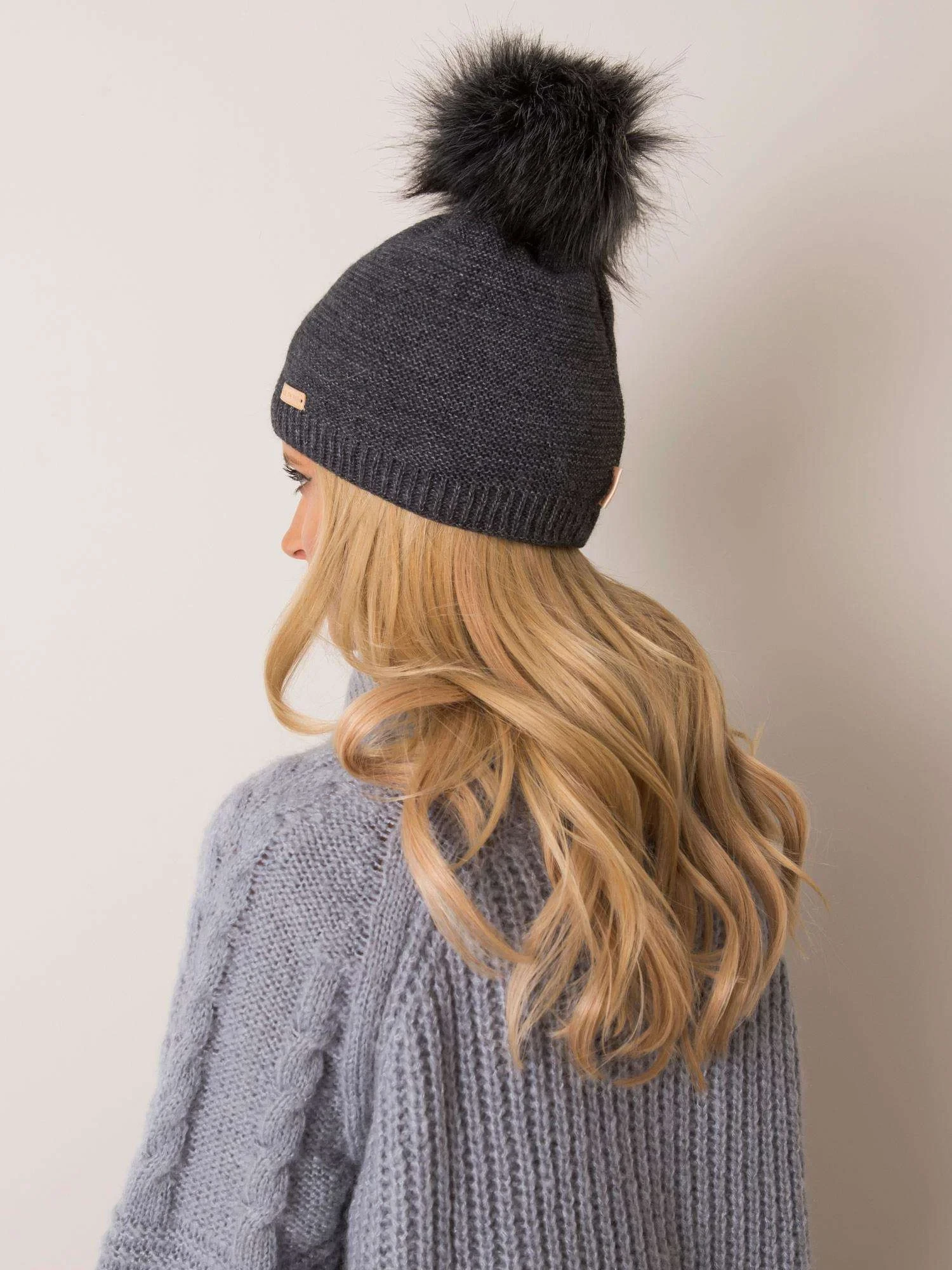 RUE PARIS Tmavě šedá čepice s bambulí Polský výrobek