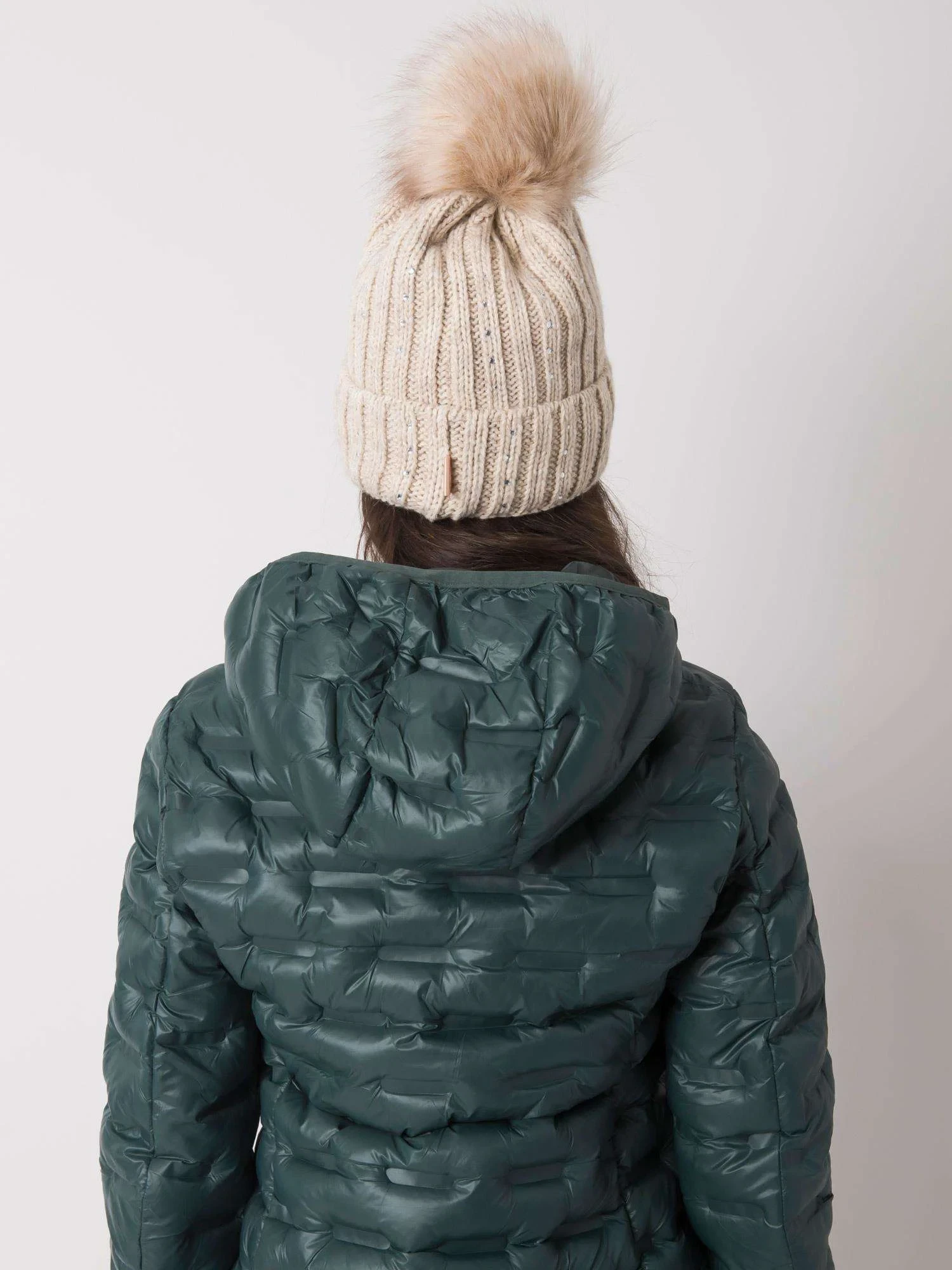 Béžová zateplená čepice s aplikacemi