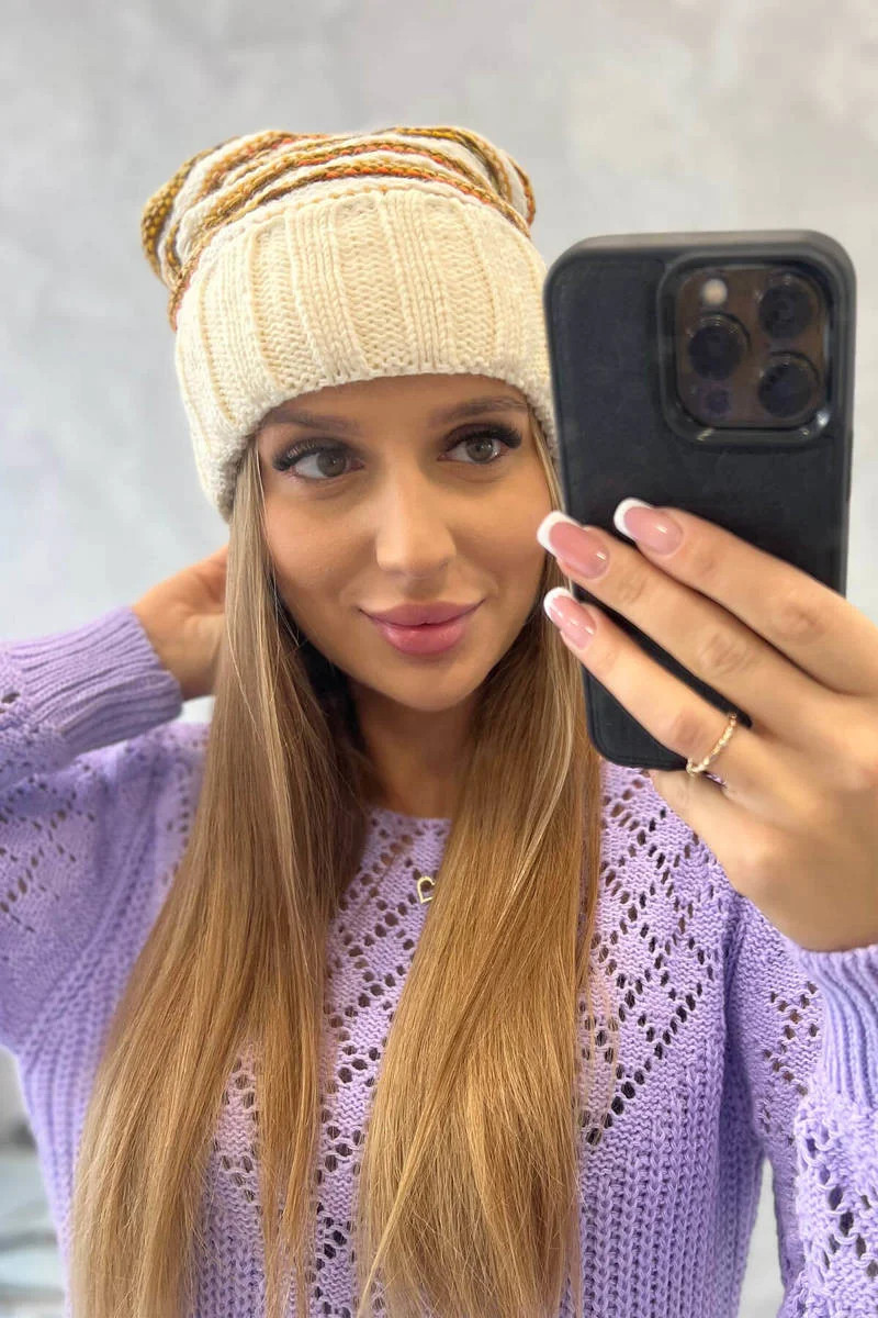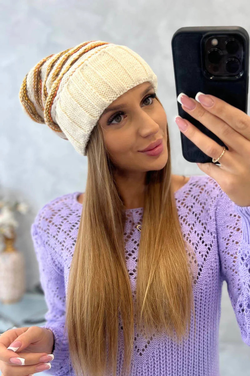 Dámská čepice Feba K330 ecru+orange