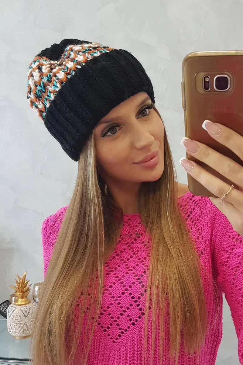 Dámská čepice Iris K348 black+mint