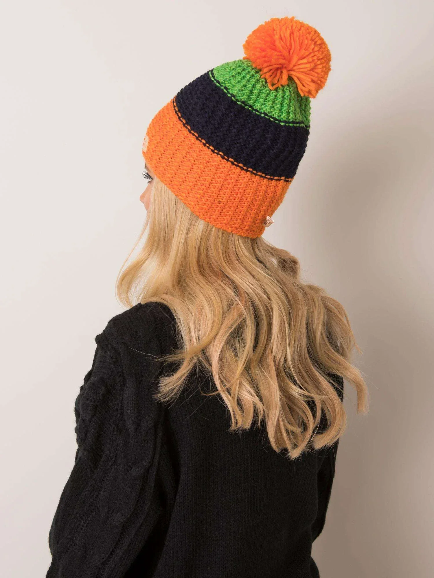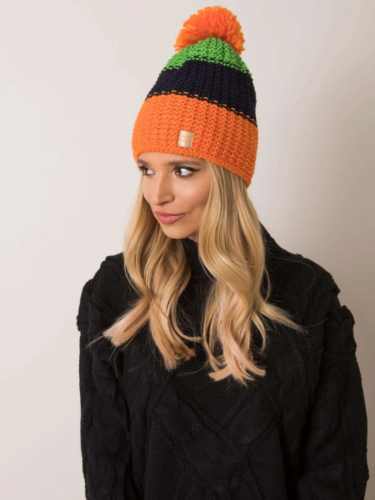 RUE PARIS Dámská oranžová a tmavě modrá čepice Polský výrobek