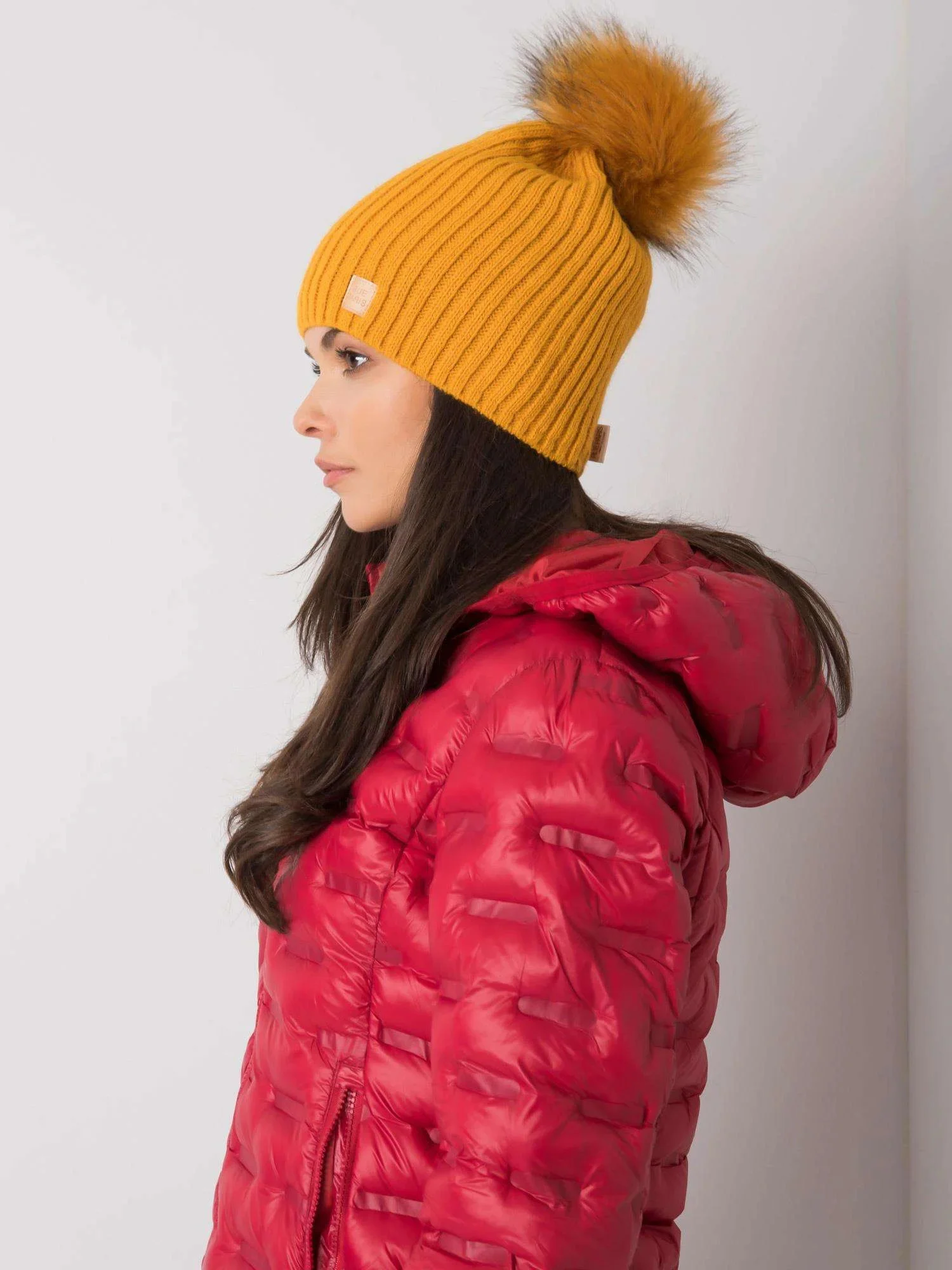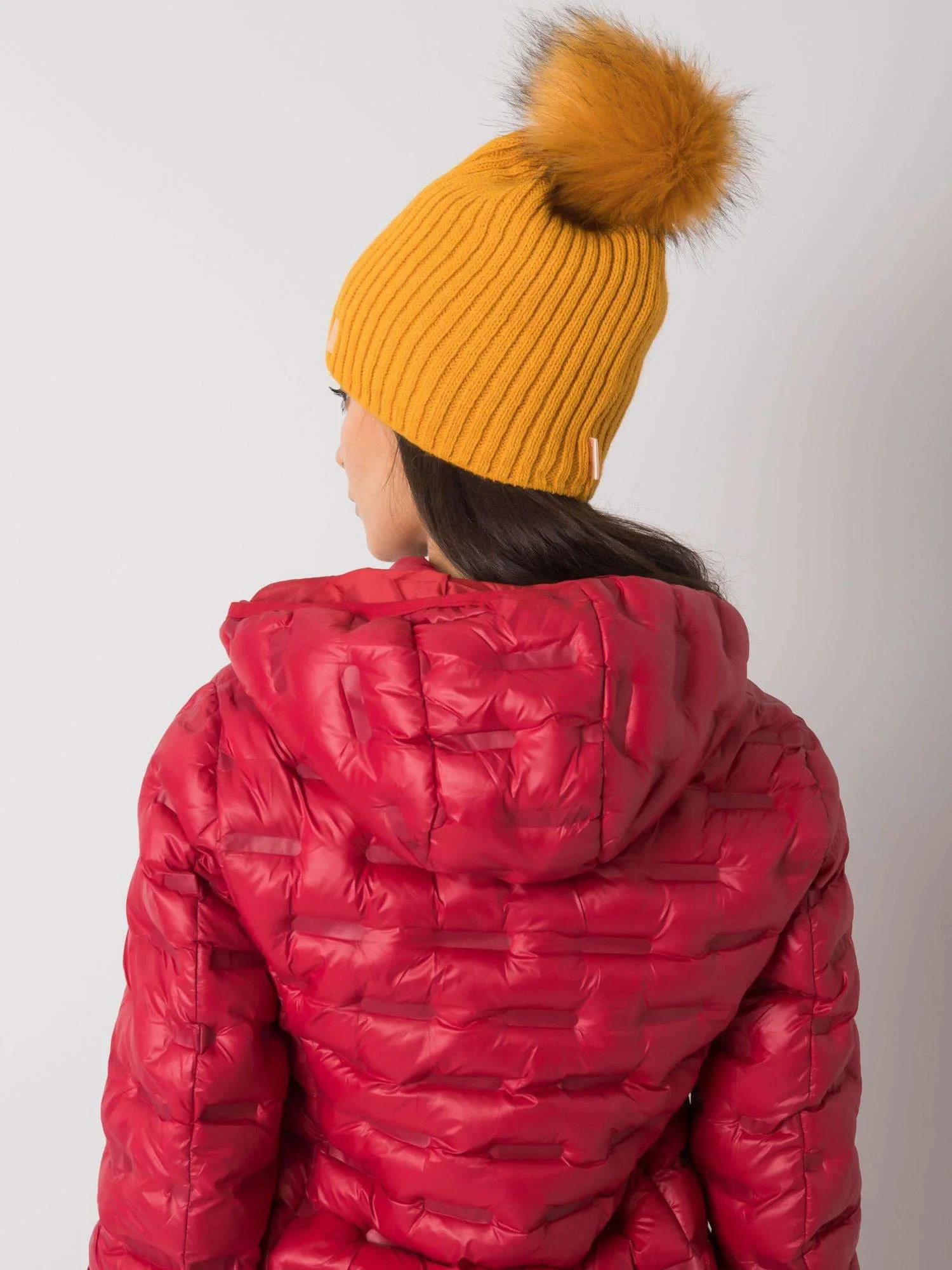 Tmavě žlutá čepice s bambulí Polský výrobek