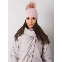 Světle růžová zimní čepice s bambulí Polský výrobek