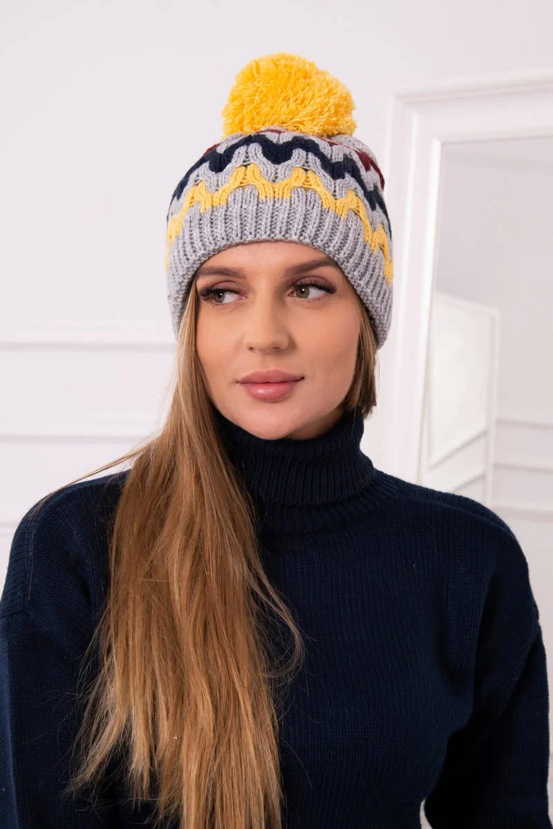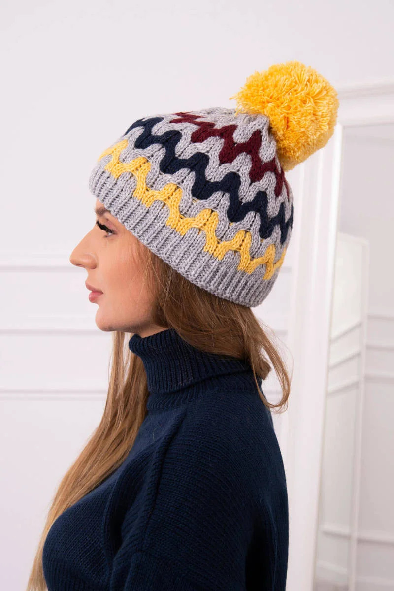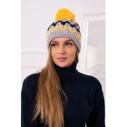 Dámská čepice Laila K283 tmavě šedá+žlutá