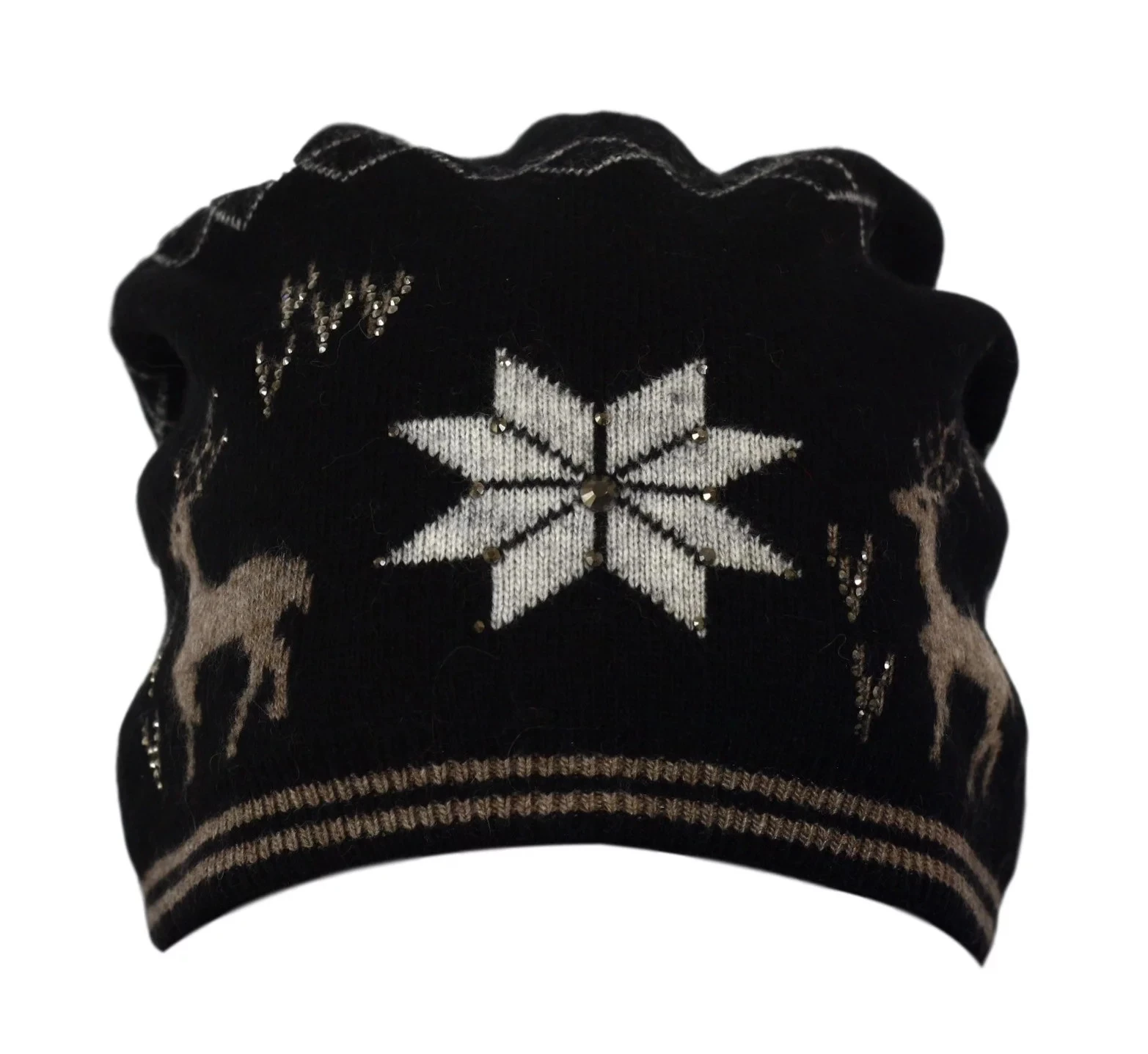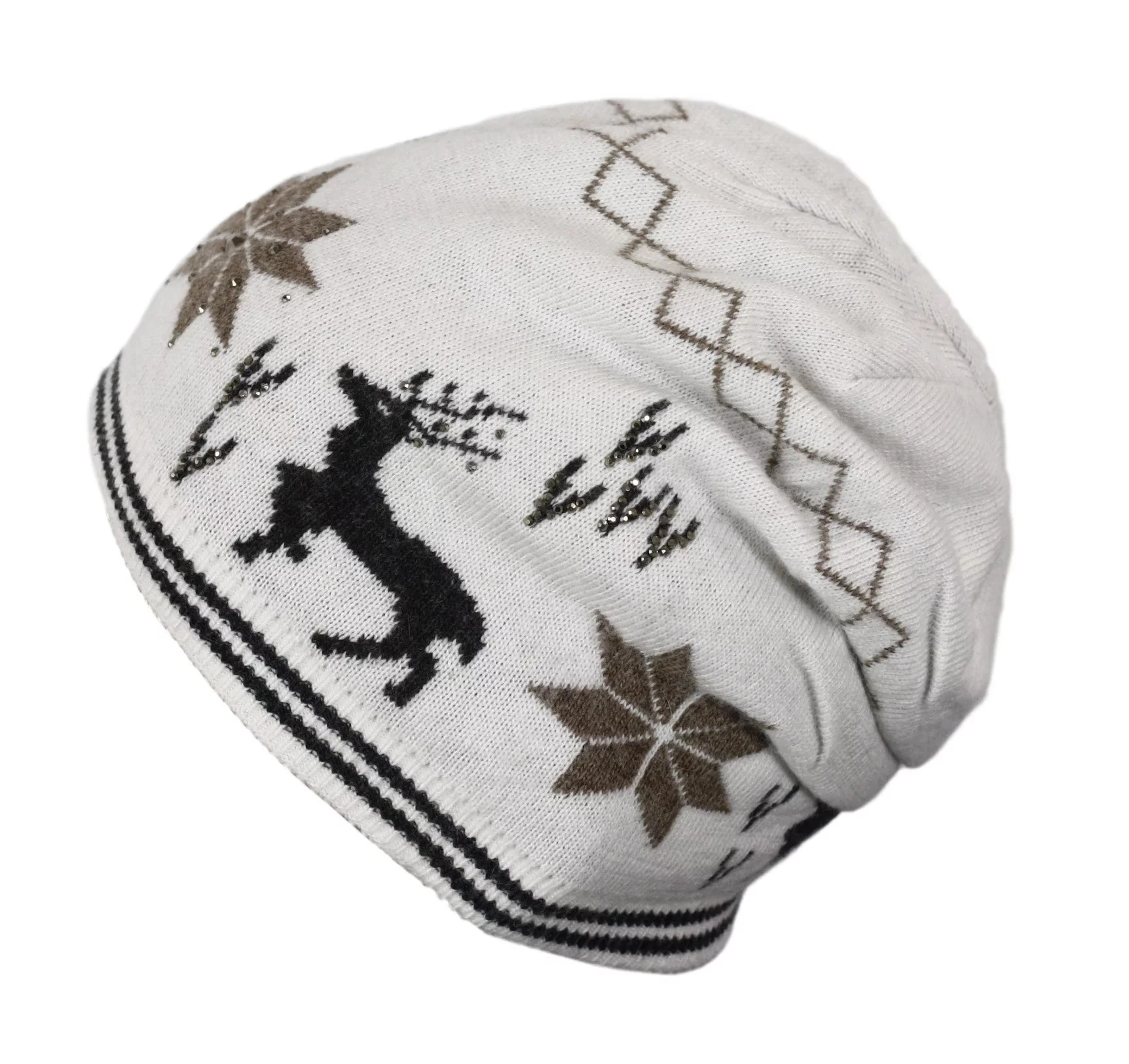 Líbivá zimní dámská čepice, s vyšitým vzorem. Materiál: 64% akryl, 6% angora, 30% vlna.