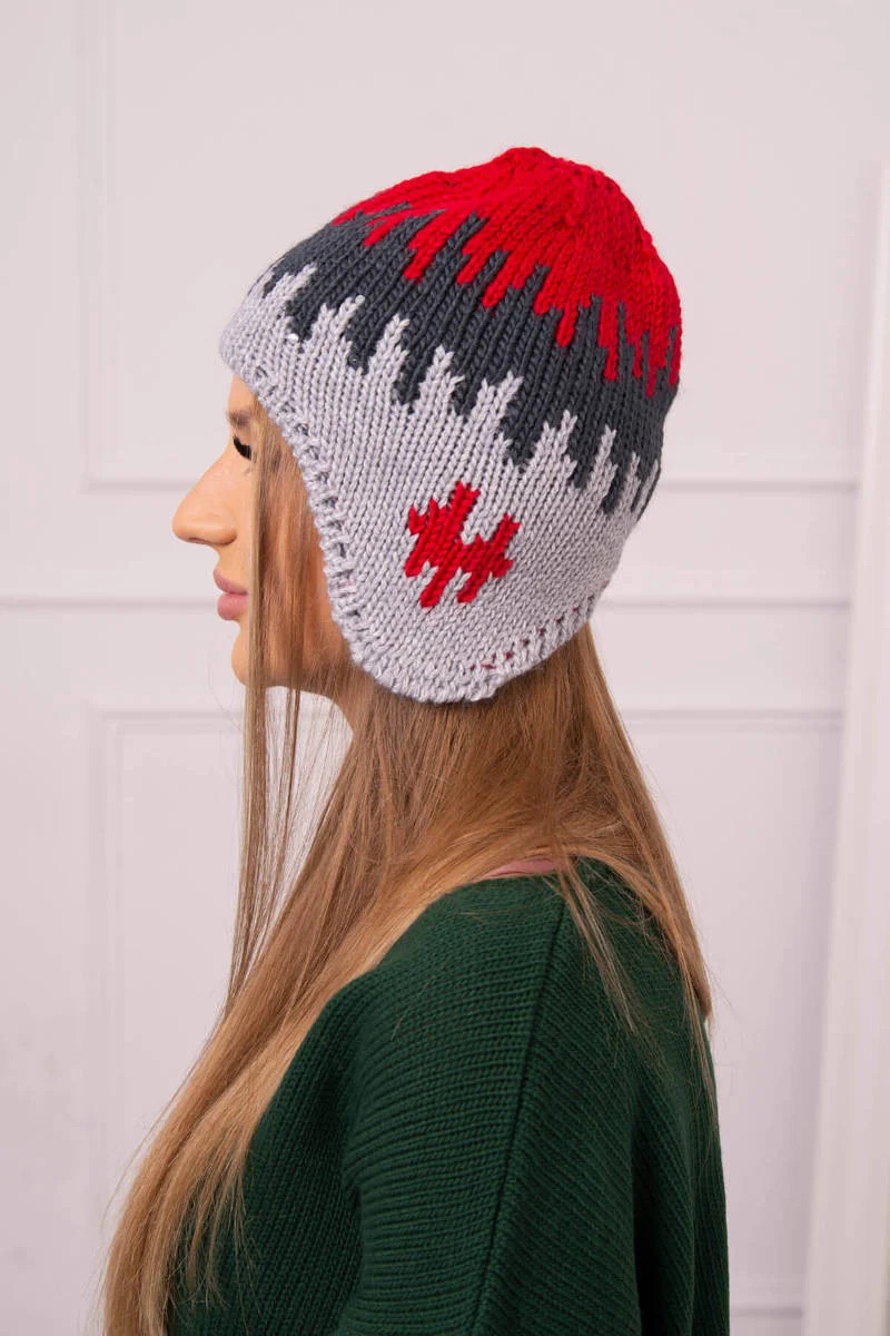 Dámská čepice Nikol K405 červená+grafitová+tmavě šedá