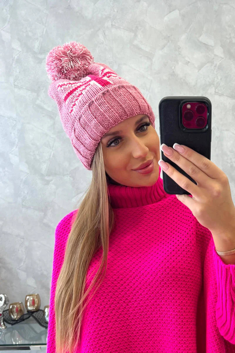 Dámská čepice s bambulí Elizabeth K386 tmavě růžová