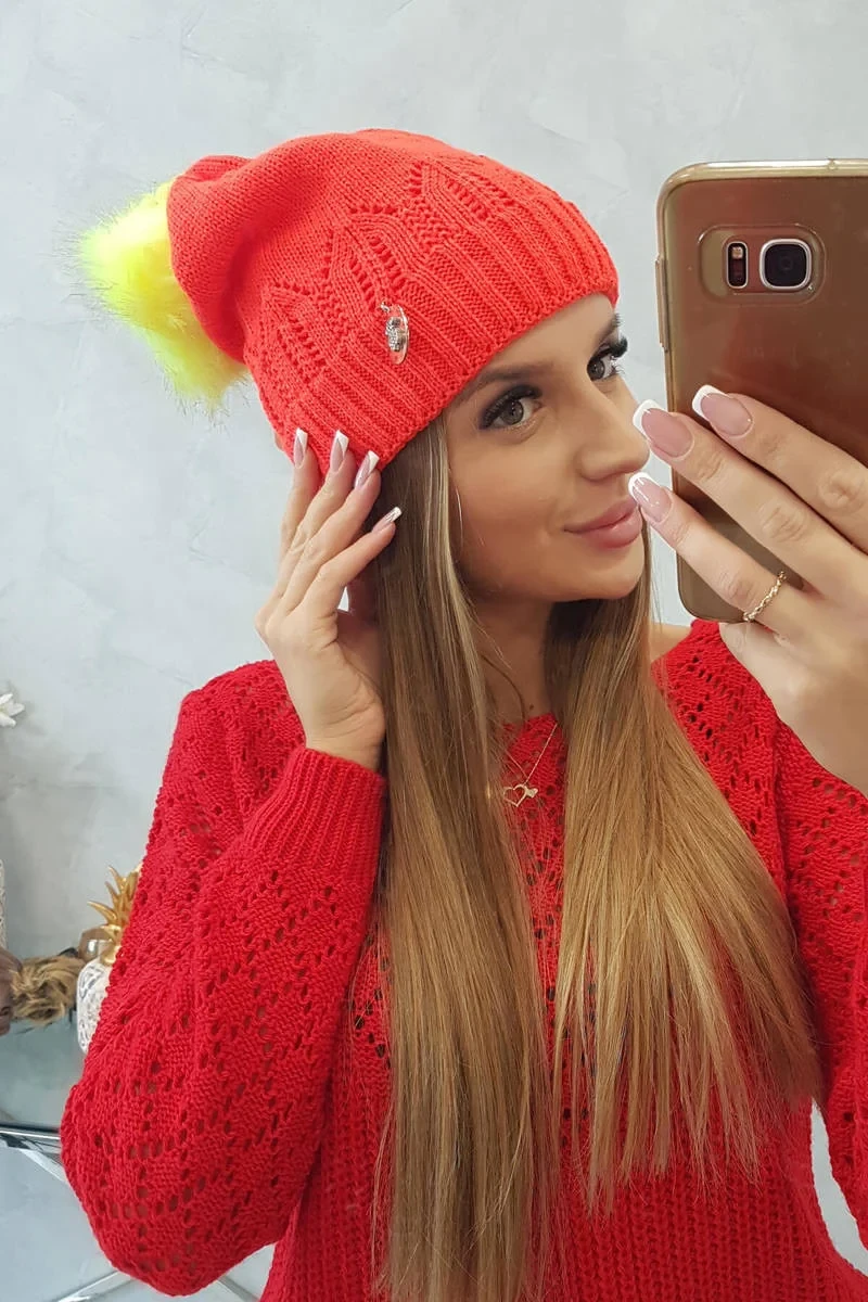 Dámská čepice s bambulí Judyta K347 oranžová