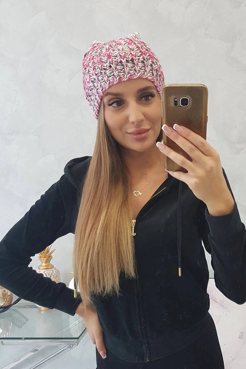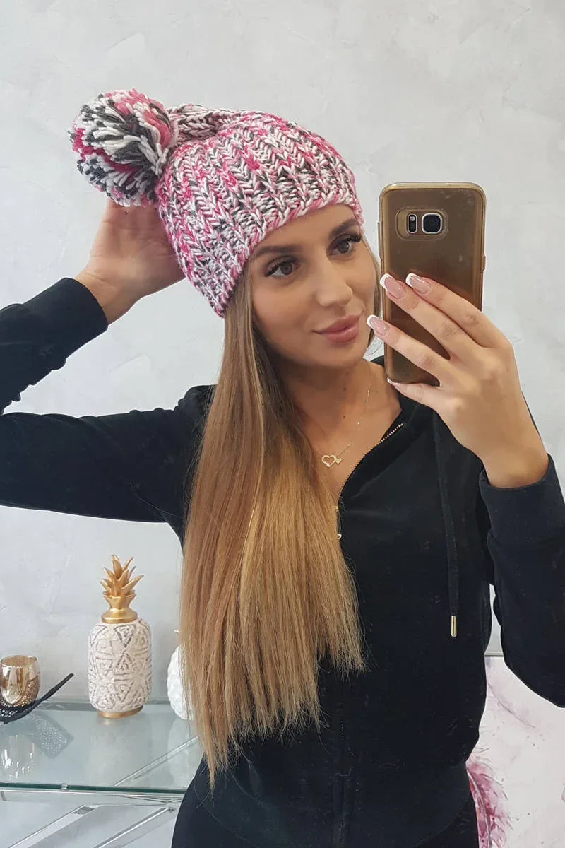 Dámská čepice s bambulí Maria K335 fuchsiová