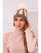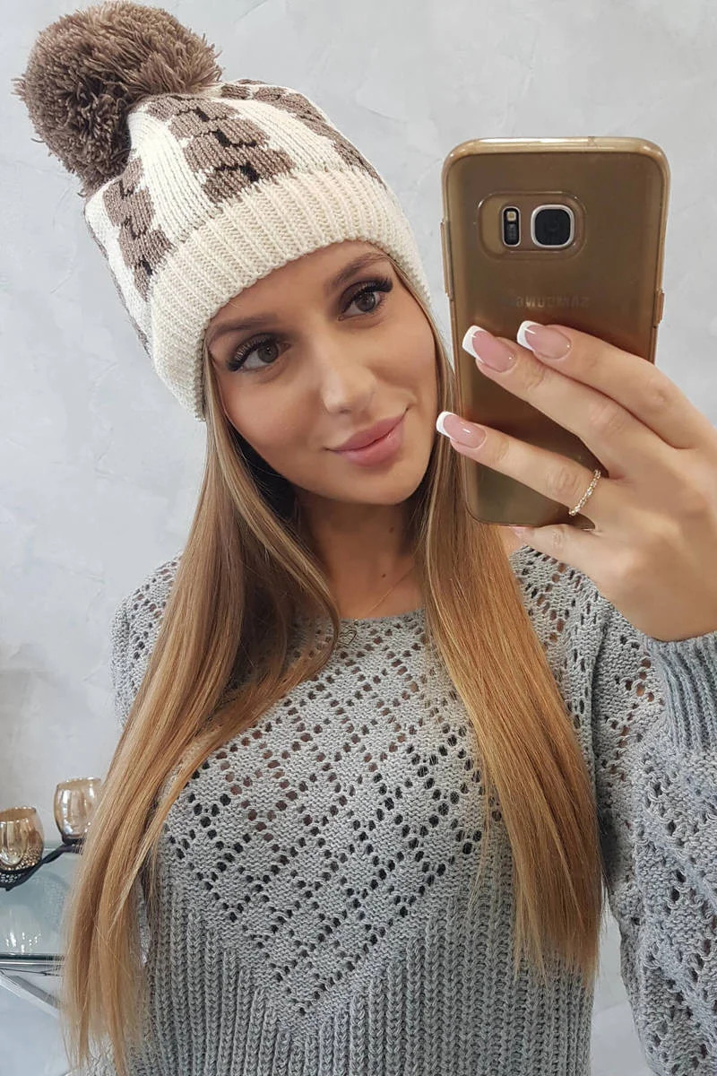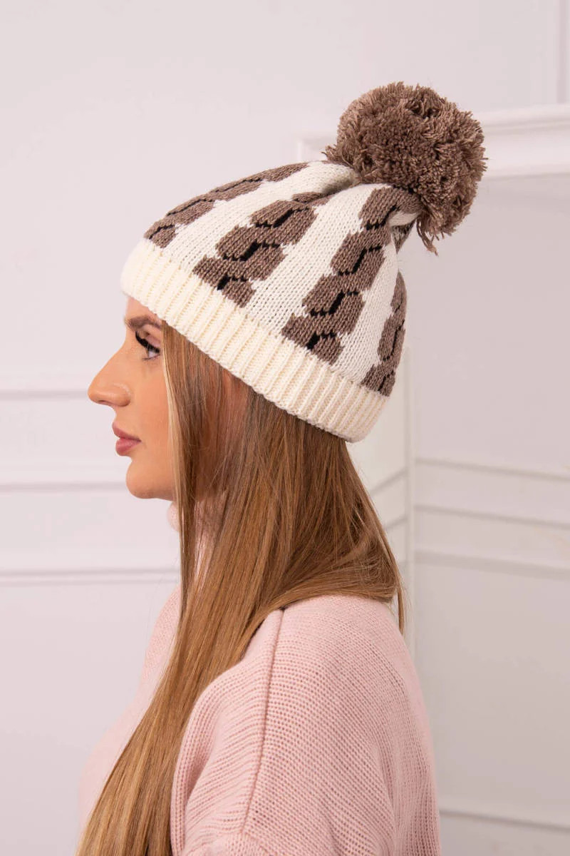 Dámská čepice s bambulí Rozalia K323 mocca+ecru