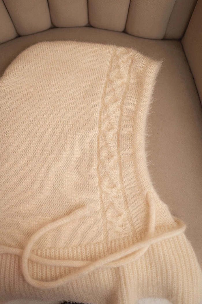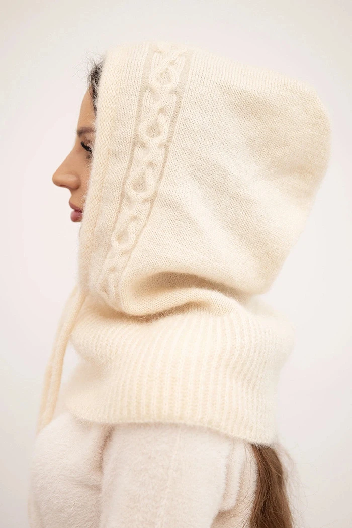 Dámská čepice s kapucí a pleteným model 21718823 ecru - K-Fashion