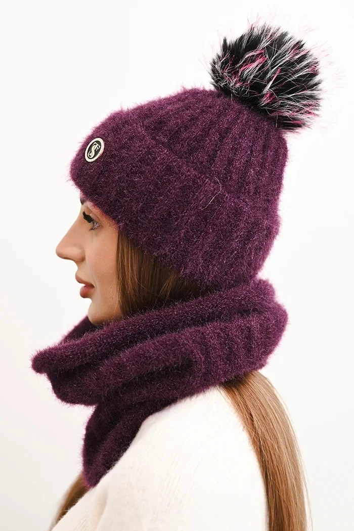 Stylový a praktický zimní set pro ženy – čepice s efektním velkým pomponem a měkký nákrčník. Vyrobeno z příjemného na dotek, nadýchaného úpletu s jemným leskem. Zajišťuje tepelný komfort a módní vzhled v chladných dnech.
