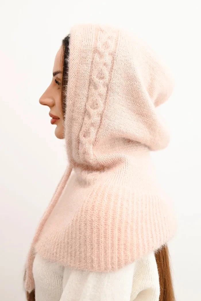 Dámská čepice s kapucí a pleteným vzorem bílá