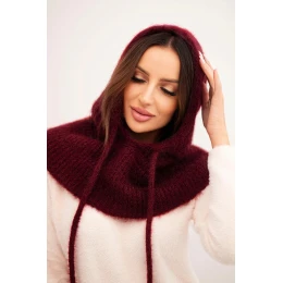 Dámská čepice s kapucí, šněrováním a copánkovým vzorem bordová