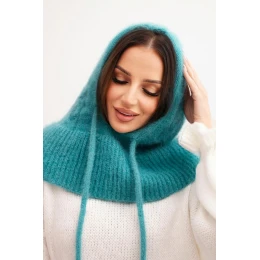 Dámská čepice s kapucí, šněrováním a copánkovým vzorem mátová