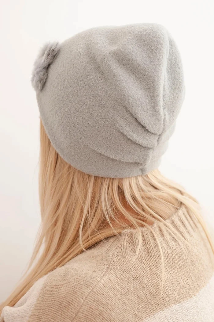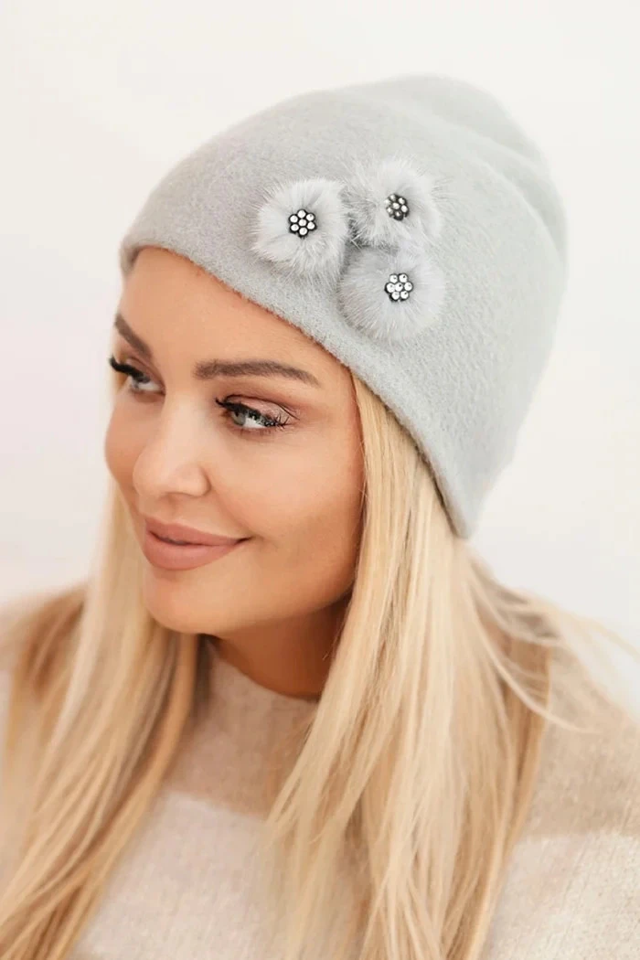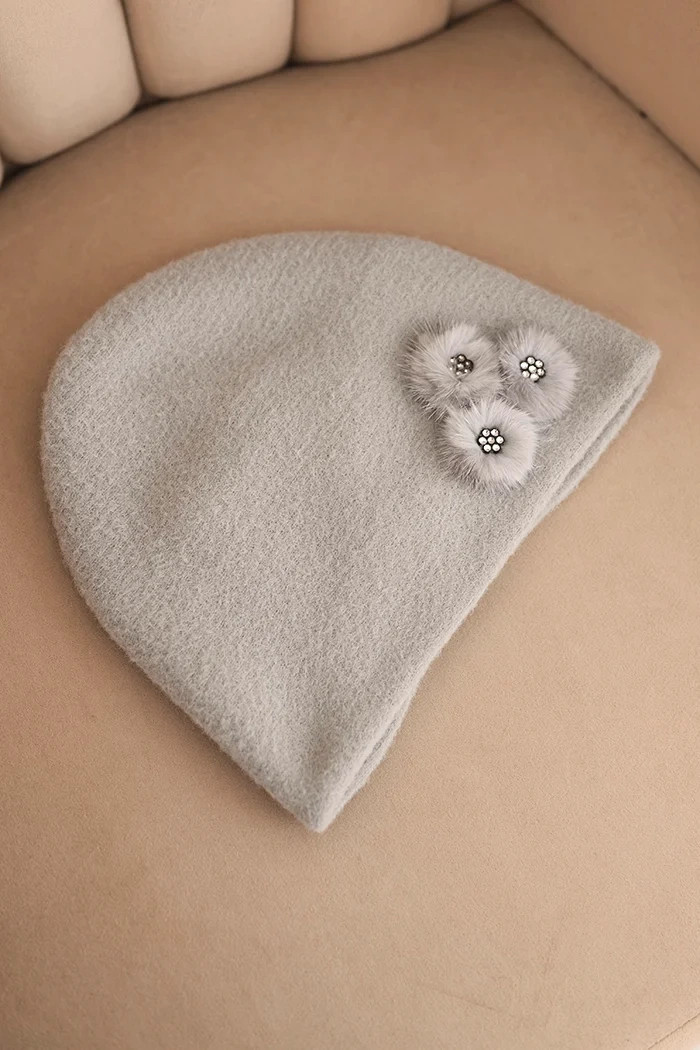 Přidání recenze k Dámská čepice s ozdobnými kožešinovými květy elegantní světlá šedá
