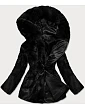 Dámská černá bunda - kožíšek s kapucí (BR9743-1)