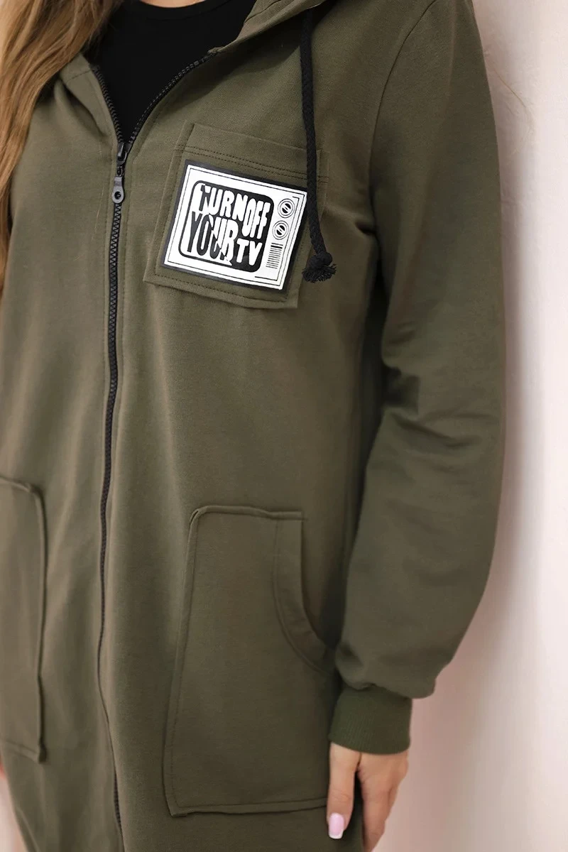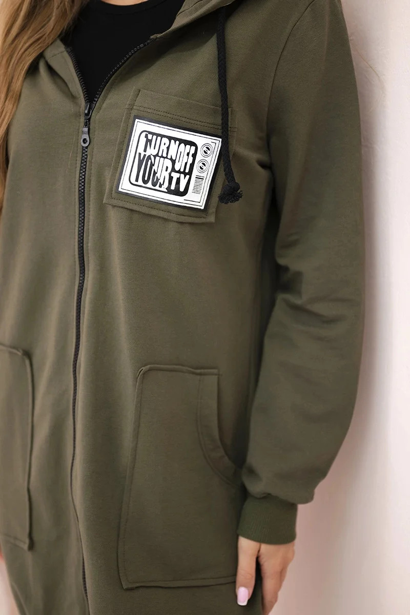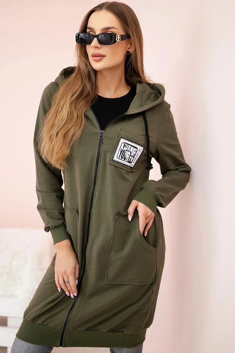 Přidání recenze k Dámská delší mikina s kapucí a zipem khaki