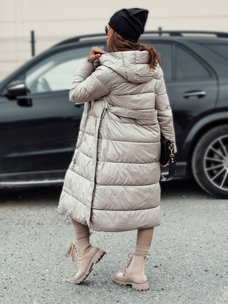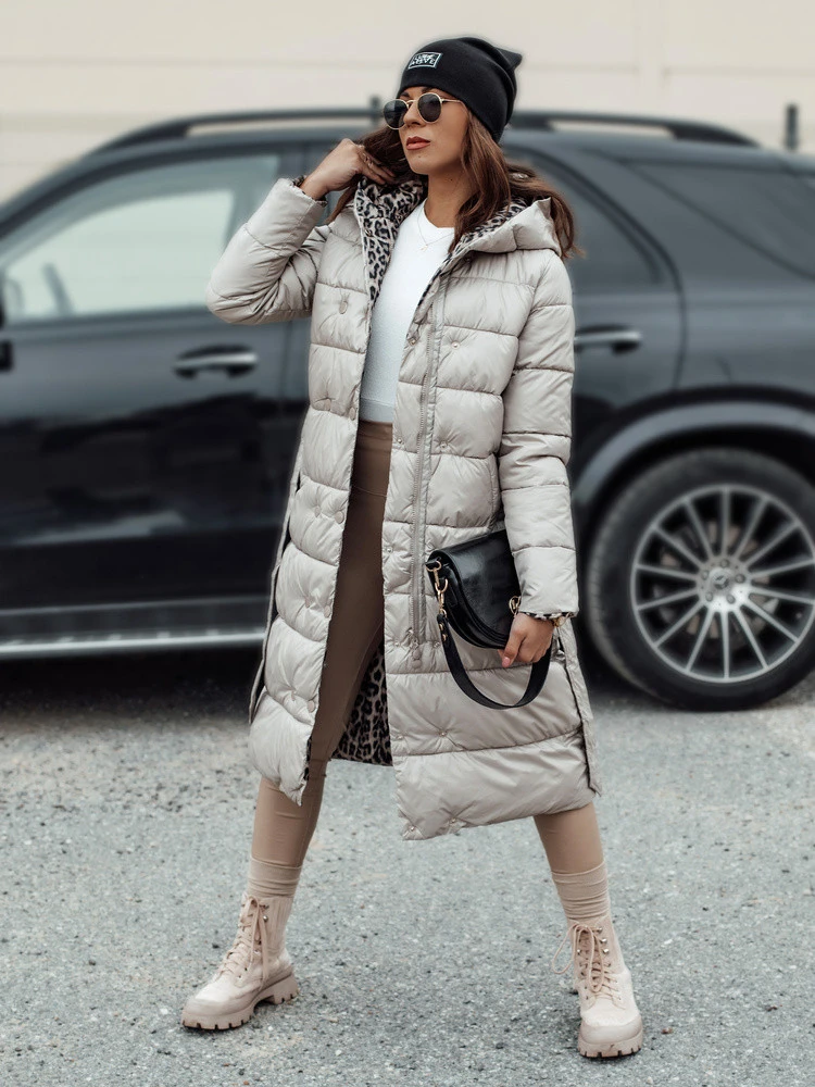 Dámská dlouhá prošívaná bunda s kapucí oboustranná béžová Dstreet model 21980854 - FashionStreet
